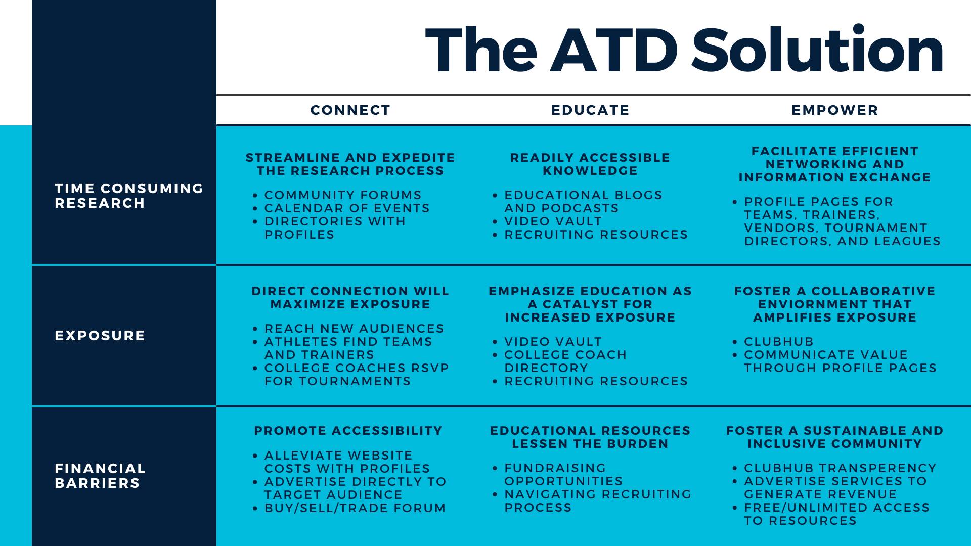 Check out this blog post highlighting how ATD is committed to fostering the growth of vendors, trainers, tournament directors, and college coaches.